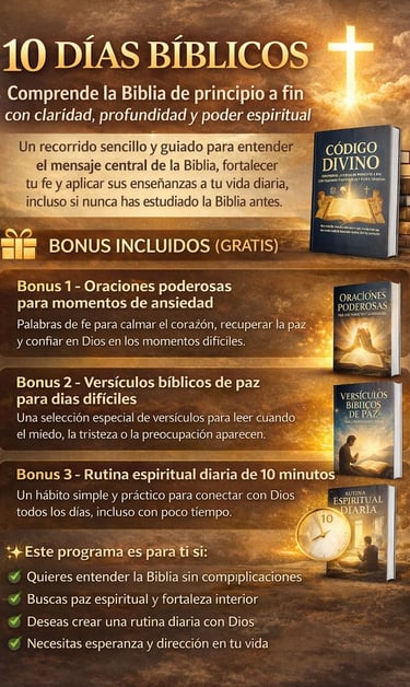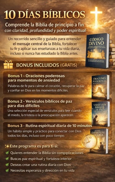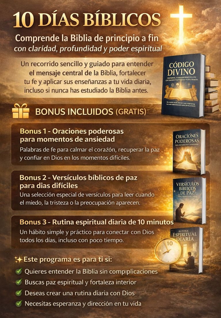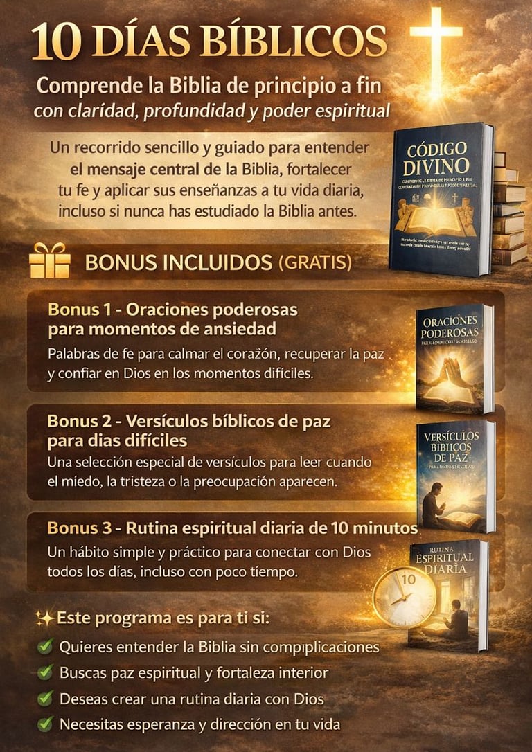 10 Días Bíblico es una guía clara y práctica que te enseñará cómo interpretar correctamente los textos bíblicos, evitar errores comunes y aplicar los principios de la hermenéutica de forma sencilla. Ideal para quienes desean profundizar en la comprensión del mensaje divino con responsabilidad y revelación.